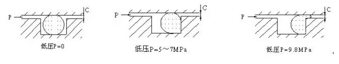 O形橡膠密封圈一般是由壓縮所產(chǎn)生的回彈來(lái)進(jìn)行密封的,但隨著壓力的增加,其被擠入密封濁隙而產(chǎn)生形狀變化,如圖4-1