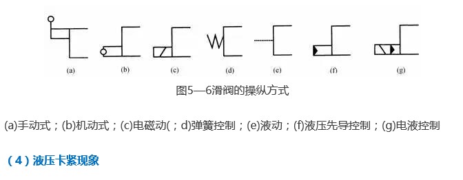 由于滑閥式換向閥閥芯與閥體孔的加工誤差或裝配時中心線不重合,進入滑閥配合間隙中的壓力油將對閥芯產生不平衡的徑向力,而使閥芯的偏心加大,最終使閥芯緊貼在孔壁上,使得操縱滑閥運動發生困難,甚至卡死,這種現象稱作液壓卡緊。下圖5—7是液壓卡緊原理圖。