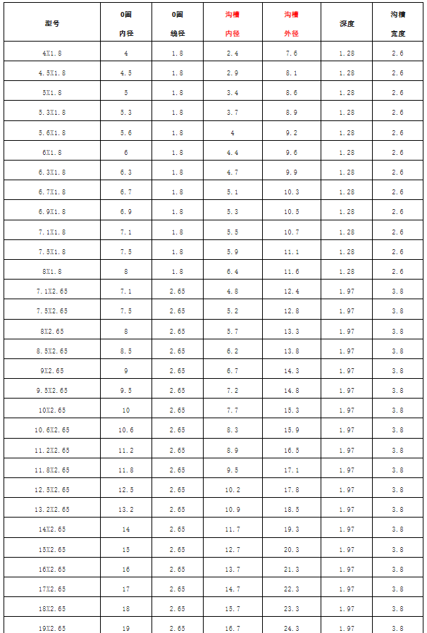 泵閥設(shè)備常用O型密封圈尺寸參照表