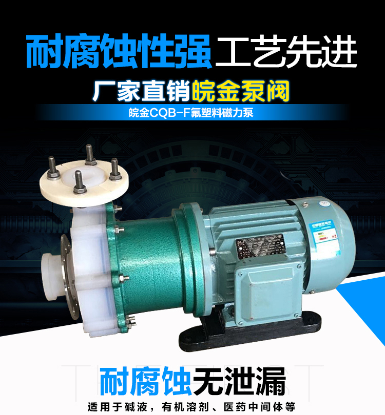 氟塑料磁力泵又稱其為氟塑料磁力離心泵、氟塑料磁力驅動泵、耐腐蝕磁力化工泵,CQB-F全塑磁力泵是氟塑料磁力泵中的經典結構款型。