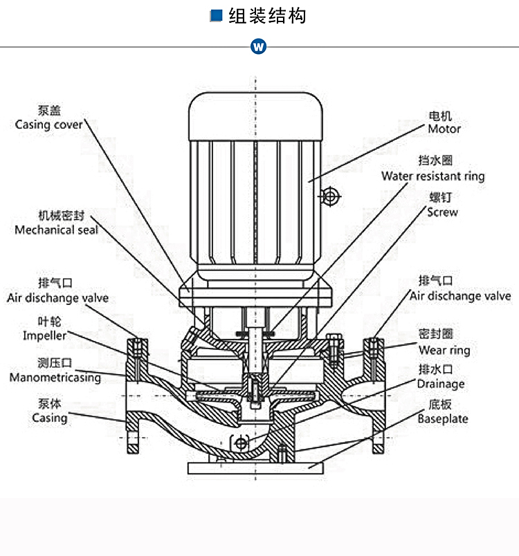 WJLG立式管道離心泵供輸送清水及物理化學性質類似于清水的其它液體之用,適用于工業和城市給排水、高層建筑增壓送水、園林噴灌、消防增壓、遠距離輸送、暖通制冷循環、冷暖水循環增壓及設備配套,正常使用溫度<100℃,100℃以上配制耐高溫材料。
