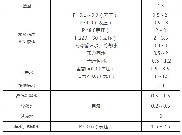 介質的流速大,閥門通徑可以小些,但阻力損失較大,閥門易損壞。流速大,對易燃易爆介質會產生靜電效應,造成危險;流速太小,效率低,不經濟。對粘度大和易爆的介質,應取較小的流速。油及粘度大的液體隨粘度大小選擇流速,一般取0.1~2m/s。